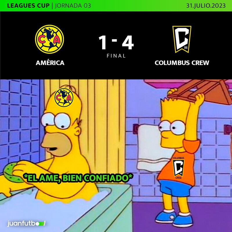 Ya se veían levantando la Leagues Cup tras su primer partido, pero el América fue humillado este lunes por el Columbus Crew, que los goleó 4-1 para asegurarse el liderato del grupo, mientras las Águilas son objeto de memes y burlas por todos sus detractores, que hoy les echan en cara sus ánimos de triunfalismo de la semana pasada cuando vencieron al St. Louis City.