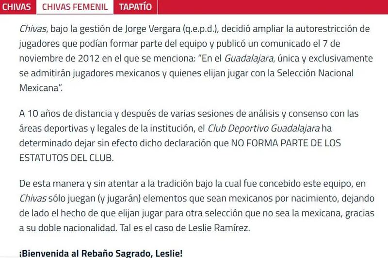 EL CASO LESLIE RAMÍREZ Y OTRA MODIFICACIÓN A LA REGLA DE ‘SOLO MEXICANOS’ EN CHIVAS
