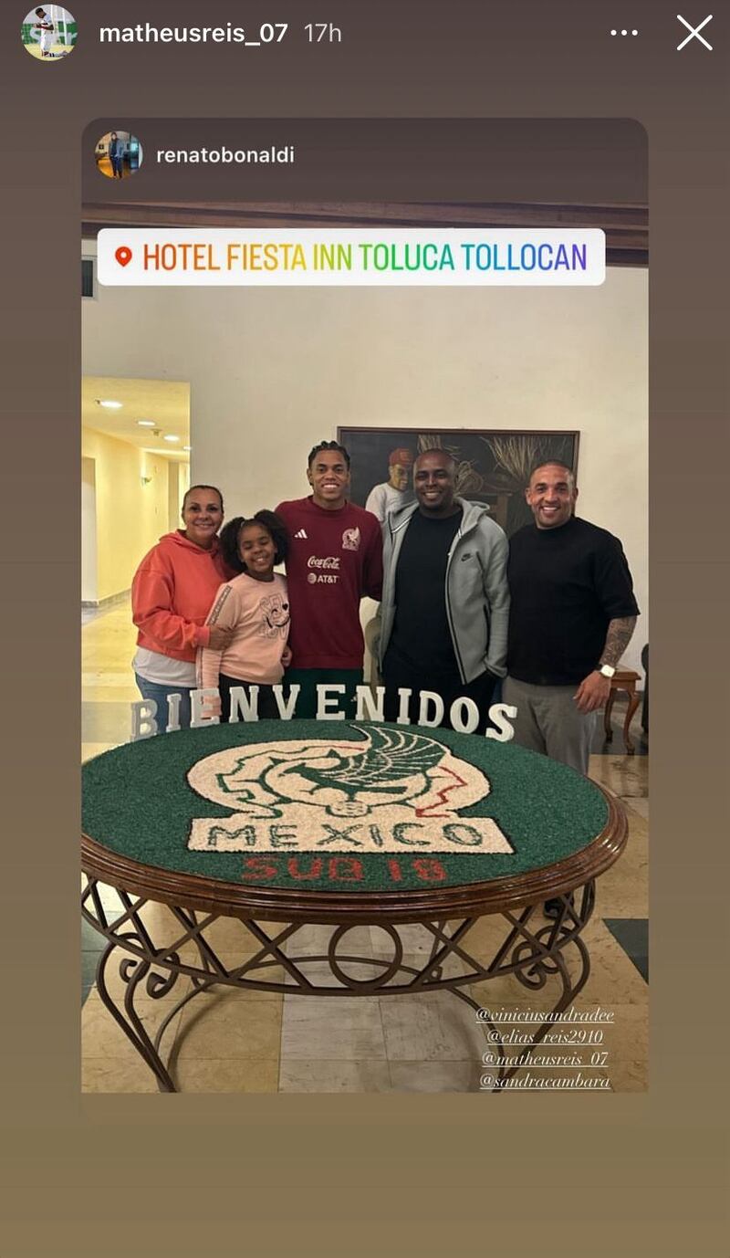 A través de su cuenta de Instagram, el extremo canarinho se congratuló por la convocatoria al Tricolor menor: “Gloria a Dios, muy feliz por mi primera convocatoria a la Selección Mexicana”, se lee en @matheusreis_07.