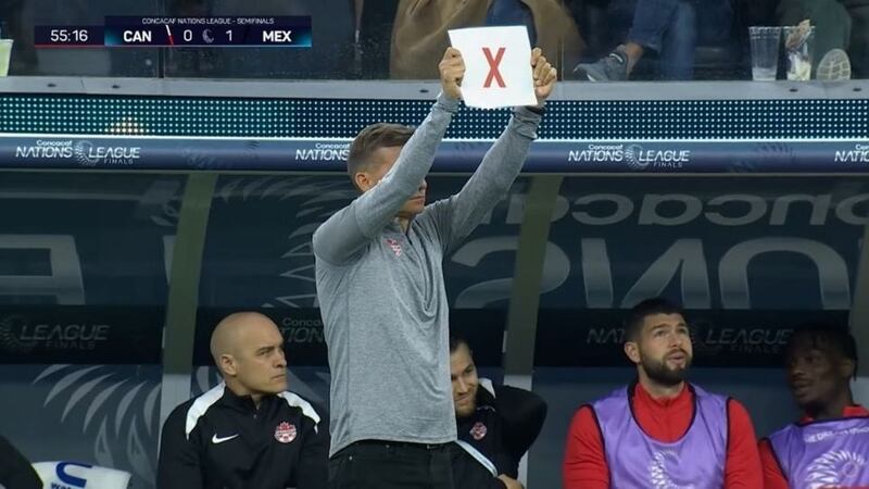 Durante el choque entre México y Canadá, se dio una imagen bastante curiosa, ya que Jesse Marsch, DT de la Hoja de Maple, mostró un par de carteles durante el partido, mismos que tenían una X o una O; ¿qué significan?