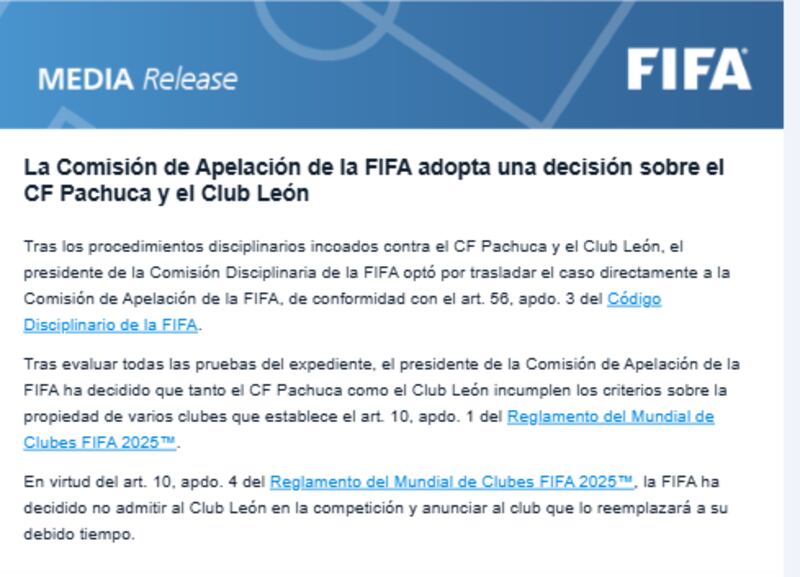 No te pierdas: ‘BOMBAZO mundial’: Prensa internacional reaccionó a la expulsión de León del Mundial de Clubes