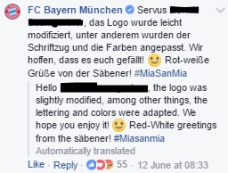 La nueva imagen de los campeones de la Bundesliga consiste en tonalidades más saturadas y oscuras de rojo azul. Además, las letras 'M' y 'C' fueron ajustadas ligeramente y la bandera de Baviera fue rotada cinco grados y engrandecida, por lo que ahora sólo hay 7 diamantes azules en lugar de ocho en el centro del escudo.